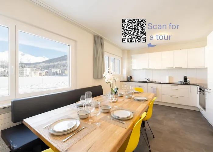 Charming Apartment In St Moritz med 2 sovrum, som ligger ungefär 20 minuter till fots från St. Moritz lutande torn, erbjuder skidförvaringsrum för skidälskare. I den 105 m² stora lägenheten, som ligger en kort bit från Sankt Moritz kasino, kan du koppla av på en uteplats.